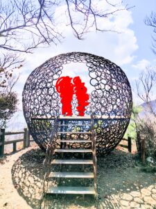 さて、空の玉以外にもゲージュツ作品が点在していると知った我々は、他のもついでに見てみることにしました。寒霞渓から降りてきてやってきたのは屋形崎夕陽の丘。夕日が美しく見えるポイントのようでした。