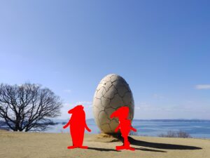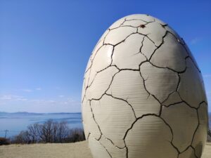 海を見下ろす丘にひび割れた卵が。何かがはじまりそう!